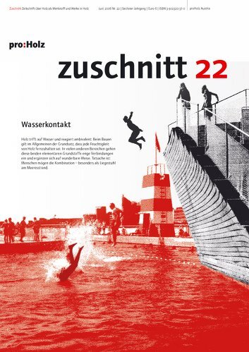 »Wasserkontakt – Holz und Wasser«: ein logisches Nachfolgerthema zum Zuschnitt 21, der dem Holzschutz gewidmet war. Dort konnte man lesen, dass diese Kombination gefährlich sein kann, was die Dauerhaftigkeit von Bauteilen aus Holz betrifft, und dass der Grundsatz gilt, Holz sei von Wasser fern oder Holz