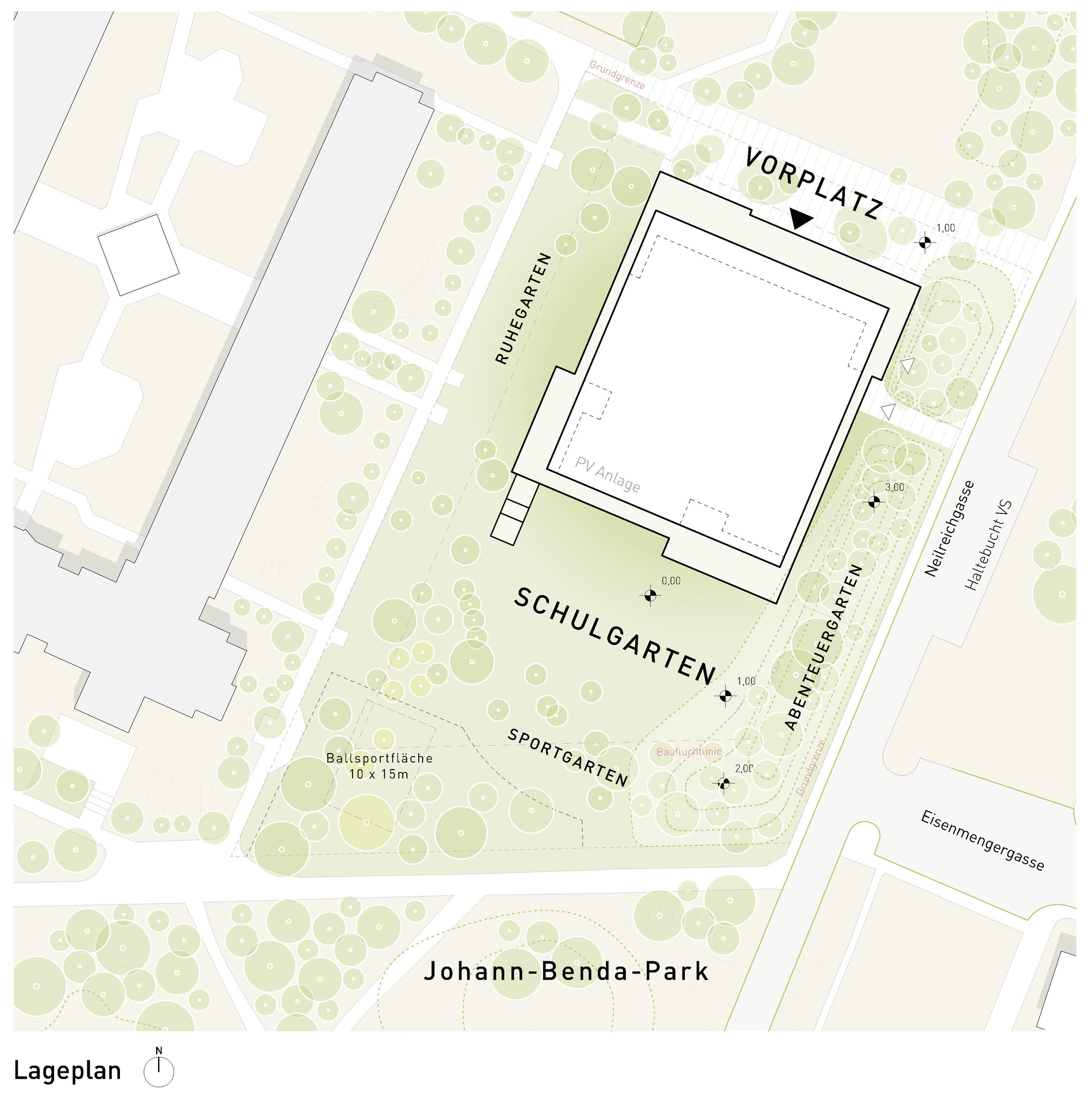 Gegenstand des Wettbewerbs war die Erlangung eines Lösungsvorschlages für den Neubau einer 17-klassigen ganztägig geführten Volksschule am Standort Neilreichgasse 126, 1100 Wien. Neben den Bildungsbereichen, die in 4 Clustern organisiert sind, sind in der Bildungseinrichtung gemeinsame Kommunikations- und Kreativfunktionen und ein Normturnsaal untergebracht. Das pädagogische Programm wird ergänzt durch Verwaltungsräume, den Küchenbereich und die erforderlichen Nebenräume lt. Raum- und Funktionsprogramm sowie Bewegungs- und Spielflächen im Freibereich.