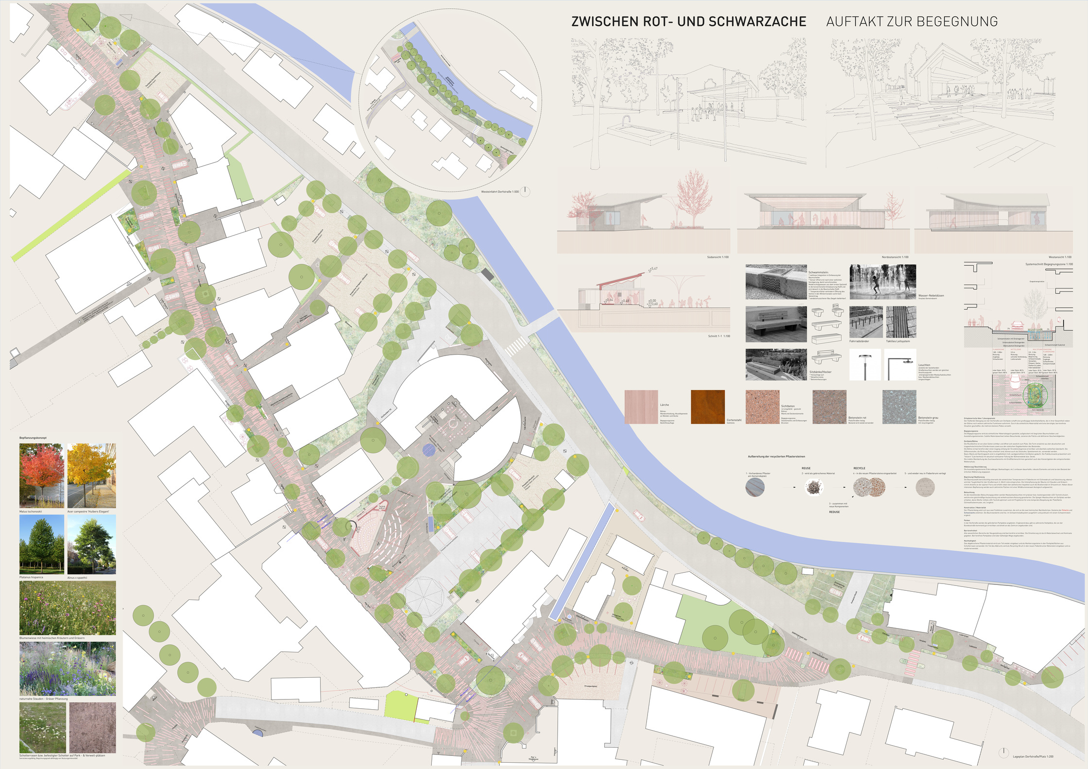 Gegenstand des Verfahrens war die Erlangung von Vorentwurfskonzepten für die Neugestaltung des Dorfzentrums und der Dorfstraße der Marktgemeinde Fieberbrunn