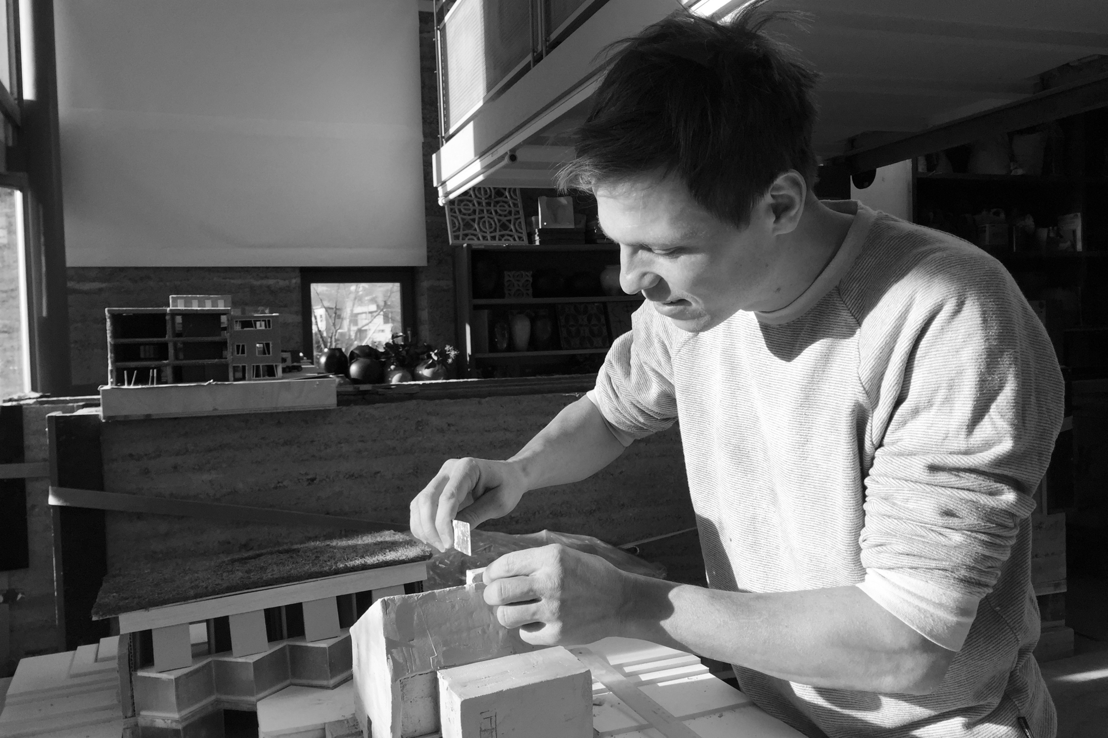 Martin Mackowitz, geb. 1984, ma_ma Werkraum für interaktive Baukunst in Schlins. Aufgrund familiärer Verflechtungen plant er sein Haus neben der Lehmbauwerkstatt von Martin Rauch. Sein Bauplatz ist nicht nur Bauplatz, sondern die wesentliche Ressource für das Bauwerk.