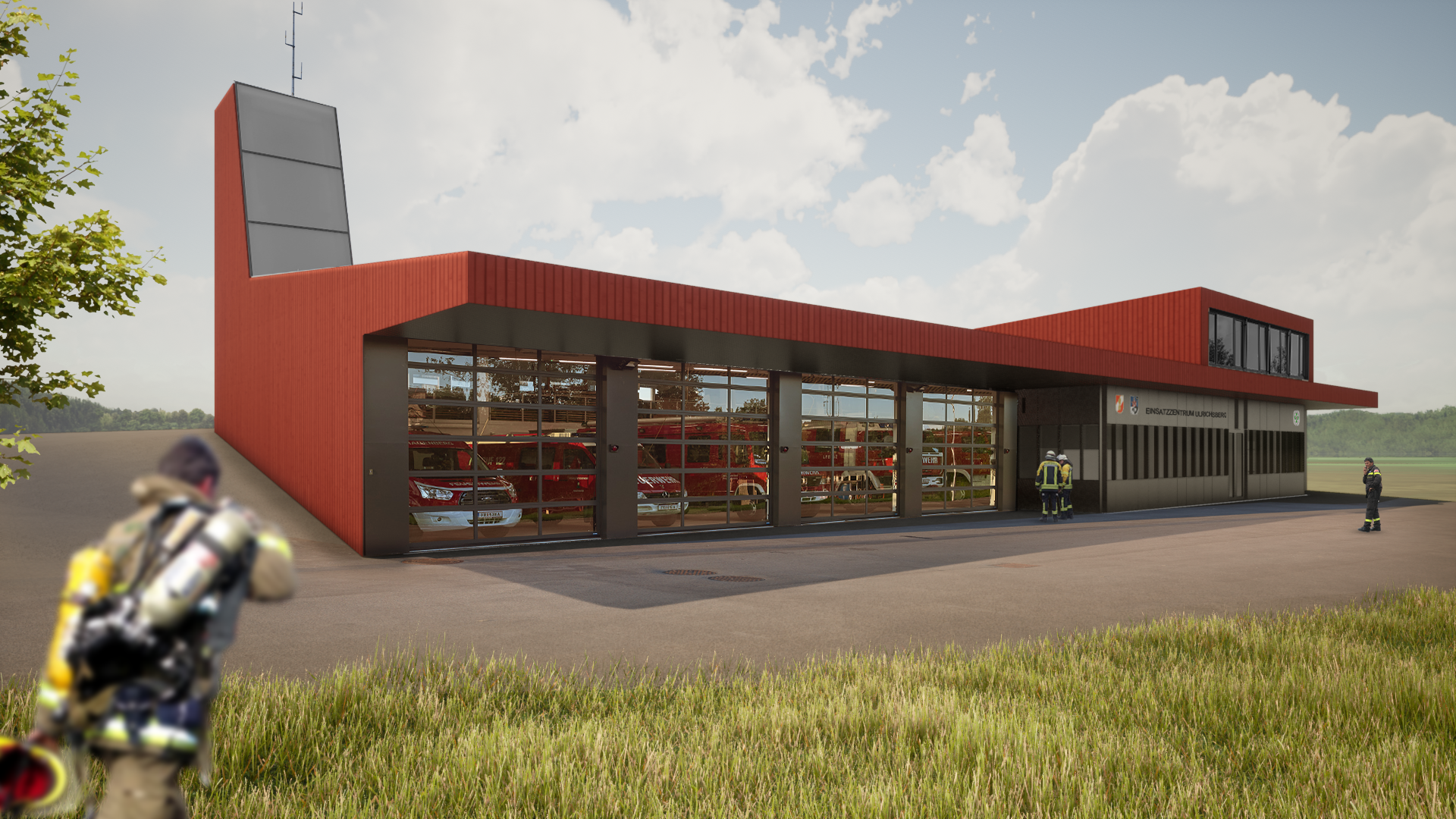 Neubau eines Feuerwehrgebäudes mit einer Bergrettung Ortsstelle in Ulrichsberg Oberösterreich.