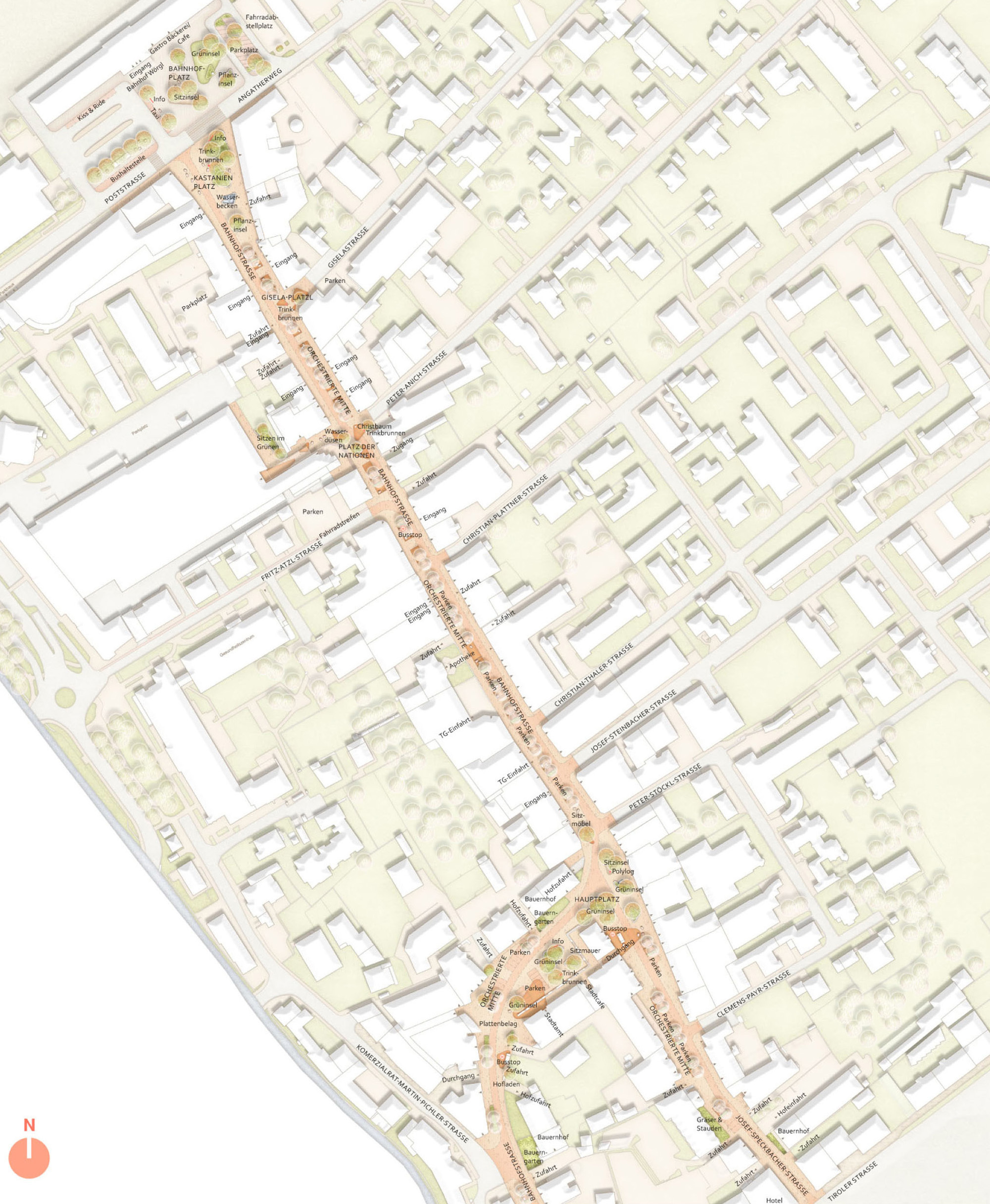 Aufgabenstellung: Erlangung von baukünstlerischen Vorentwurfskonzepten (reduzierte Vorentwurfsunterlagen) für die Neugestaltung Fußgängerzone Bahnhofstraße Wörgl