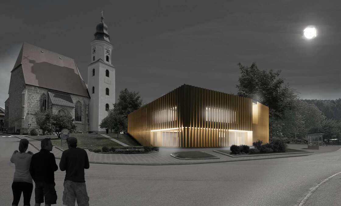 Aufgabenstellung: Die Gemeinde Zell am Pettenfirst beabsichtigt auf dem Planungsgebiet mit ca. 2.106 m² die Errichtung eines neuen Amtsgebäudes mit Musikheim und Räumen für die Pfarre.