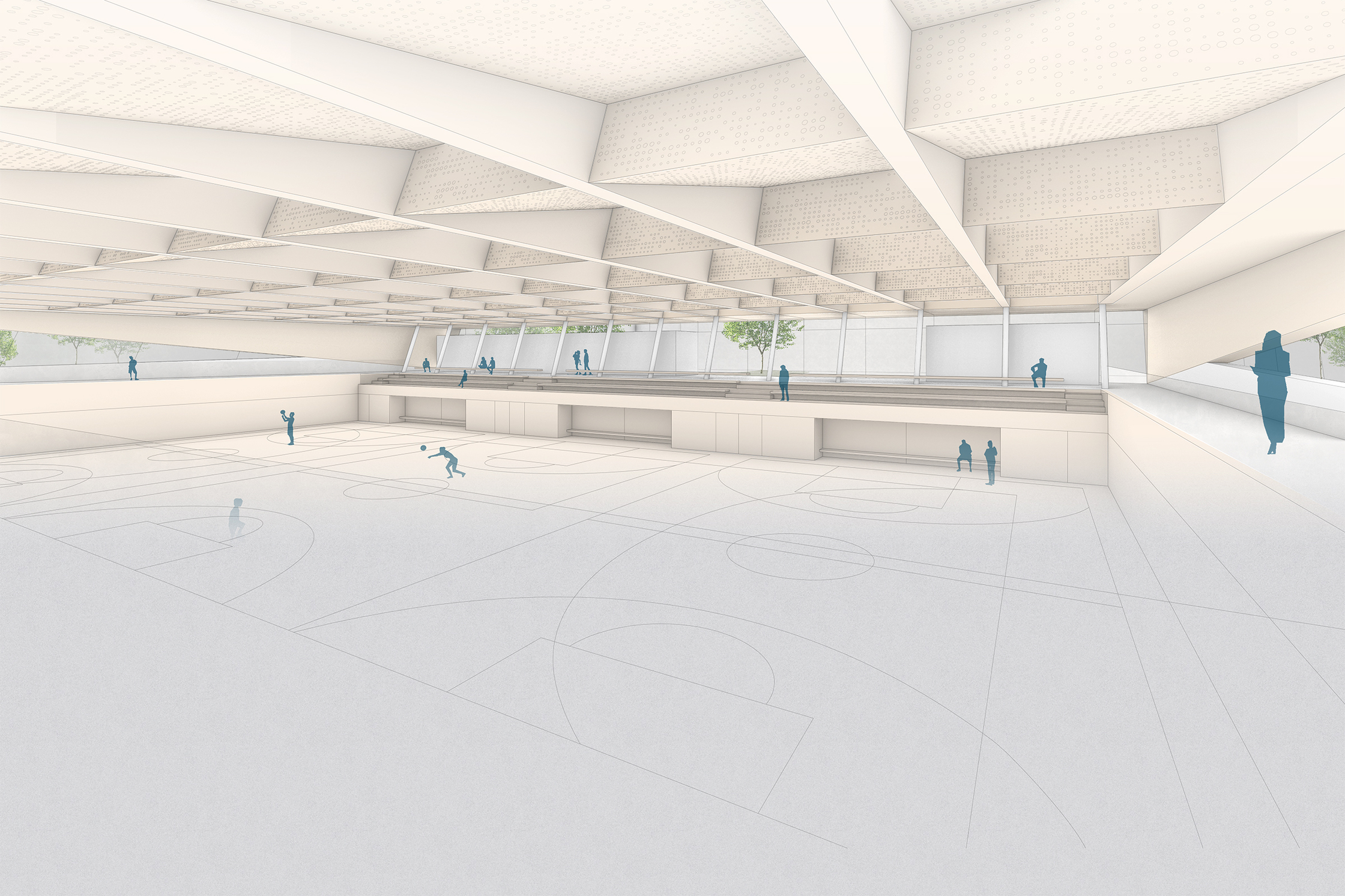 Gegenstand des Verfahrens war die Erlangung von baukünstlerischen Vorentwurfskonzepten für den Neubau einer Dreifach-Sporthalle nach den Vorgaben des bereits auf Basis einer Masterplanung festgelegten Bebauungsplanes im Bereich des neu entwickelten Ortsteilzentrums Neue Mitte in Neu-Rum