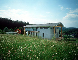 Hintersdorf in Niederösterreich: Mit einer ganz anderen, nicht minder engagierten Haltung ist hier ein völlig neues Einfamilienhaus errichtet worden. Für den Entwurf zeichnen die Architekten Christa Prantl und Alexander Runser verantwortlich. 1960 beziehungsweise 1955 geboren und Absolventen der TU, nennen sie ihr Werk „Haus am Hang“. Auf einer langen Handtuchparzelle stehend, nimmt es mit seiner geschlossenen Längsrechteckform darauf Bezug.