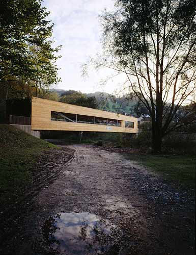 Die Brücke Gaißau verbindet das österreichische mit dem Schweizer Ufer. Die Forderung nach einer unterhaltsarmen Brücke und die Tatsache, dass an dieser Stelle einmal eine Holzbrücke gestanden ist, bedeutete für Hermann Kaufmann eine Herausforderung zur Neuinterpretation traditioneller überdachter Holzbrücken mit heutigen Mitteln.