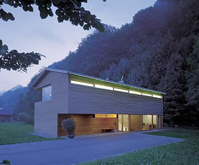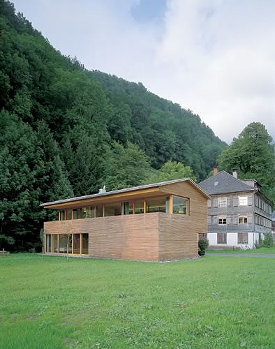 Das unter Mitarbeit von Marina Hämmerle entstandene neue Haus dient einem Ehepaar als Alterswohnsitz. Auf dem benachbarten Grundstück befindet sich das gut zehn Jahre früher entstandene erste Einfamilienhaus aus der Hand Helmut Dietrichs, das prototypisch für die damalige Entwicklung der Vorarlberger Baukultur steht. Die von ländlichen Nutzbauten übernommene, nobilitierte Vertikalschalung; die von leichten Irritationen aufgelockerte Symmetrie der Fassaden; die Elemente regionaler Baukultur, wie Satteldach und „Schopf“ - ein loggienartig eingezogener Außenraum, der oft dem Eingang vorgeschaltet wird -, all das stand und steht für ein kollektives Produkt der „Baukünstler“, das Vorarlberg über den Kreis Architekturinteressierter hinaus in der Welt bekannt gemacht hat.