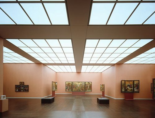 Gemessen an der kommunikativen Struktur des Ludwigs-Museums am Dom von Peter Bussmann und Godfrid Haberer von 1986, in dem die Exponate in Foyers, auf «Plätzen» und entlang enger «Strassen» dem Geist der siebziger Jahre entsprechend offen präsentiert wurden, was zumal bei der historischen Kunst zu einem kaleidoskopischen Wirrwarr führte, darf man das neue Museum als Fortschritt betrachten. Es herrscht nun vom Raumdispositiv her wieder ein musealer Charakter vor wie im 1957 eingeweihten Haus von Rudolf Schwarz. Verglichen mit der Lichtführung und Wandgestaltung im Schwarz-Bau oder auch den architektonisch schlichten, die Bilder tragenden Räumen der neuen Berliner Gemäldegalerie, ist die Kölner Sammlung vom 13. bis ins frühe 20. Jahrhundert in ein neues Provisorium eingezogen. Dafür spricht auch die Tatsache, dass im Ungers-Bau mit rund 550 Werken (von 2000) zehn Prozent weniger zu sehen sind als am Dom.