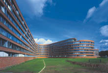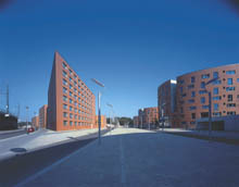 Die 500 Meter lange, lässig geschwungene Wohnwand des Berliner Architekten Georg Bumiller ist das markanteste Stück des grössten Wohnbauprojektes in der Innenstadt Berlins. Sie beherbergt 437 der insgesamt 718 Wohnungen, die für Abgeordnete und Mitarbeiter des Bundestages vorgesehen waren. Das neue Quartier grenzt zur einen Seite an den Bundespräsidentensitz Schloss Bellevue und zur anderen ans Westende des von Axel Schultes und Charlotte Frank entworfenen anderthalb Kilometer langen «Bandes des Bundes», des grössten Bauprojekts für Parlament und Regierung in Berlin.