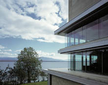 Der 53jährige Pariser zählt zu jenen französischen Baukünstlern, die mit suggestiven Bildern die Essenz eines Ortes zu visualisieren suchen. So präsentiert sich denn das durch alte Bäume verschleierte Gebäude - einer Metapher der Moderne folgend - mit seinen 80 Meter langen «Decks» zum See hin wie ein Ozeanriese. Dennoch empfindet man den sich klar von den Nachbarvillen abhebenden Bau weniger als Fremdkörper denn als Akzent, der auf Grund der gegeneinander verschobenen Fassadenschichten aus grossen Glasflächen und mattschimmernden Aluminiumbändern beinahe schwerelos wirkt.