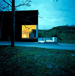 Die Architektur des Weingut Loimer erscheint vorerst radikal in ihrer Reduziertheit, ist aber durchaus bodenständig und schlüssig. Wie die traditionellen niederösterreichischen Presshäuser mit gekalktem Ziegel- oder Lehmmauerwerk und ihren winzigen Lüftungsluken Nutzbauten von archaischem Charme sind (der durch Umrüstungen zu Kellerstüberln und den Verschönerungswahn von Freizeitwinzern sukzessive abhanden kommt), ist sie nichts anderes als eine moderne Entsprechung, funktional und ohne überflüssigen Speck. Die Geschlossenheit, der schwarze Putz außen und der Sichtbeton innen hat viele verstört, aber andere angezogen. „Das Gebäude sucht sich die Kunden aus“, sagt Loimer.