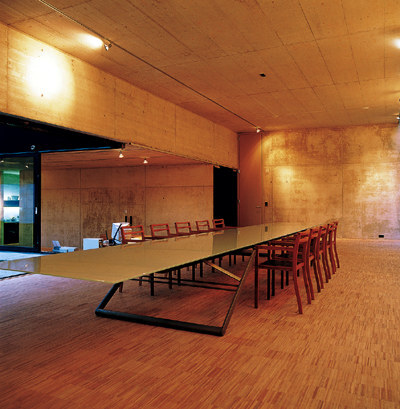 Man spürt, dass eine auf das Wesentliche beschränkte und die Bedürfnisse maßgeschneiderte Funktionalität die Konzeption bestimmte und man wenig davon hält, Besuchermassen ein Spektakel darzubieten. Beeindruckend ist das Ganze dennoch, weil mit einfachen Mitteln vorexerziert wird, dass gute Gestaltung nicht in teuren Zutaten besteht, sondern bei der sorgfältigen Bedachtnahme auf das Notwendige beginnt. Kreuzförmig angeordnete Leuchtstoffröhren und schlanke, raumhohe Türen sowie die direkt in einer ästhetisch ansprechenden Typografie auf die Sichtbetonwändeangebrachten Raumbezeichnungen und Sicherheitshinweise sind Ausdruck einer gepflegten Betriebskultur.