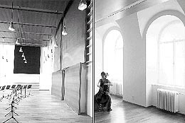 Mag sein, daß der spröde Klassizismus des Johann Aman heute anders gesehen wird als noch vor wenigen Jahrzehnten. Die zeitgenössische Architekturströmung einer schnörkellosen Einfachheit schafft es jedenfalls ausgezeichnet, mit den klaren Proportionen der Räume und dem kühlen Weiß der Mauern in Dialog zu treten.– Die Lage der Gangbeleuchtung ist auf die Fensterachsen der Hoffassade abgestimmt und in „Striche“(Fluoreszenzleuchten) sowie große (Tiefstrahler) und kleine „Punkte“ (Halogenleuchten) differenziert.