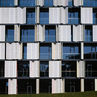 Nichts davon bei der Biokatalyse. Das nach seinem Forschungszweck betitelte Gebäude der Technischen Universität Graz wird am 19. April offiziell eingeweiht, aber von der Petersgasse aus, die den Campus der „Neuen Technik“ begrenzt, ist das Haus nicht als Neubau zu erkennen. Verschiedene Forschungsinstitute stehen hier als Solitäre herum wie die Kühe auf der Weide. Der öffentliche Raum ist fest in der Hand der Parkplatzbewirtschafter. Mitten hinein in diese Ödnis hat Giselbrecht seinen kubischen Neubau gesetzt, der auf drei Seiten an eine Fertigteilschule der Siebzigerjahre erinnert. Diese Zurückhaltung rettet zwar nicht das Umfeld, fügt den aber bereits sehr in die Jahre gekommenen Instituten von Domenig / Eisenköck (Mathematik, 1989) und Szyszkowitz + Kowalski (Biochemie, 1991) nicht ein weiteres hinzu, das ein Star sein will, mittlerweile aber nur mehr alt und abgelegt aussieht. In seiner unaufgeregten Sprödigkeit orientiert sich der Bau eher am benachbarten Chemie-Institut von Karl Raimund Lorenz (1960). Dessen Rasterfassade übersetzt Giselbrecht an der einzigen „spannenden“ Seite der Biokatalyse in ein Spiel mit Klappläden.