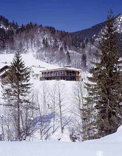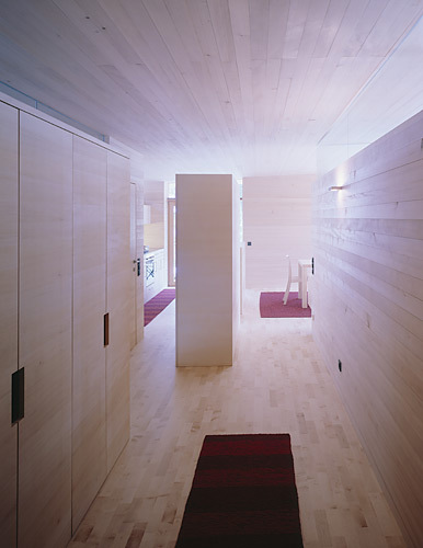 Innenansicht mit heimscher Tanne (Wände u. Decke) und Ahorn (Boden)