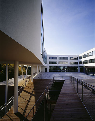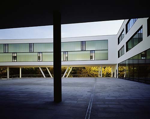 Der Hauptakteur dieses sensibel am Modell ausgetüftelten Raumgefüges aber ist nicht die Architektur, sondern die Landschaft. Sie zu rahmen und so dem zentralen Platz den Charakter einer Aussichtsplattform zu geben ist die Rechtfertigung dafür, einen simplen Bürotrakt zum Wolkenbügel hochstemmen zu dürfen. Bleibt nur noch abzuwarten, ob die Höhenluft klar genug ist, um die blendend weiße Putzfassade auch über Jahre so rein zu erhalten.