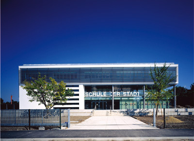 Das Gebäude hat vier Seiten und drei verschiedene Fassaden, fast so, als wären es drei verschiedene Gebäude(teile), die da ineinander gesteckt sind. Alle Seiten sind irgendwie tadellos. Aber rundherum betrachtet ist es jeweils um eine Handvoll des Tadellosen zu viel. Zwei Fassaden bilden die öffentliche, repräsentative, von der U-Bahn aus sichtbare Seite. Jede dieser beiden Mischfassaden besteht aus drei oder vier verschiedenen Teilen, aus dem Wechsel zwischen Verputz- und Glasflächen, Öffnungen, Fensterschlitzen und Sonnenblenden. Die beiden anderen Fassaden bilden die abgewandte, betriebliche Seite des Gebäudes, die zu den Gewächshäusern und den Beeten der Lehrgärtnerei hin orientiert ist. Sie sind einheitlich, ausschließlich aus Glas, sachlich, ein wenig zu banal oder ein wenig zu sehr um Eleganz bemüht.
