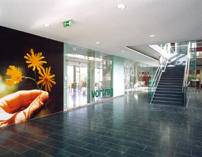 Um festzustellen, dass die Schule stellenweise sehr gut gebaut ist, muss man hinein. Es lohnt sich und geht einfach: An jedem ersten Donnerstag im Monat gibt es den so genannten Erlebnisgarten-Tag. Die Menschen dort sind freundlich. Das Foyer ist ohnehin als öffentlich zugänglicher Schauraum konzipiert, in dem die Früchte der Lehrarbeit präsentiert werden, vor allem kunstvolle Blumenarrangements. Sie dämpfen ein wenig die optimistische Geschmacksprognose.