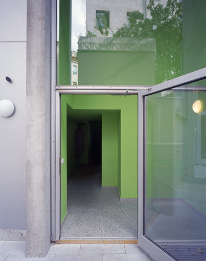 Schließlich konnten es sich selbst diese beiden Asketen nicht verkneifen, ihrer Authentizitäts-These zum Trotz, im Spalt des optisch nach außen dringenden Stiegenhauses Farbe über acht Stockwerke zu gießen. Jedes Reglement lebt erst durch seine Ausnahmen - und das satte Grasgrün, das da aus der eigentlich recht unerotischen Zone der Vertikalerschließung in den Straßenraum dringt, ist sexy. Egal, ob Wand, Decke, Stiegengeländer, Liftschacht oder Türen - es grünt so grün, wenn Hundsturms Blüten blühen!