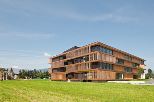 Ganz andere Bedingungen haben das Gebäude von Travel Europe in Stans geformt. Es symbolisiert einen Wendepunkt in der Geschichte eines mittelständischen Unternehmens. Noch unter dem Namen „Tirol Hotels“ hatte Travel Europe vor 20 Jahren mit der Vermittlung von Reisen nach Tirol begonnen. Innerhalb weniger Jahre gelang es den Firmeneignern, den Brüdern Anton und Helmut Gschwentner, die Aktivitäten des Unternehmens auf ganz Österreich und in der Folge auch auf die Nachbarländer, allen voran Tschechien und Ungarn, auszudehnen. Inzwischen bietet Travel Europe Reisepakete in ganz Mittel- und Osteuropa sowie in Südosteuropa an und verfügt außer der Zentrale in Stans über acht weitere Büros in verschiedenen europäischen Ländern. Die neue Firmenzentrale sollte diesen Aufbruch auch räumlich vermitteln, nicht zuletzt an die Mitarbeiter. Deren Geschäftspartner - zum überwiegenden Teil andere Reiseveranstalter, denen Travel Europe komplette Pakete von Fernreisen zum Weiterverkauf anbietet - sind in europäischen Großstädten angesiedelt. Um mit diesen Kunden auf einer Augenhöhe verhandeln zu können, sollte die Atmosphäre der neuen Firmenzentrale den neuesten Bürostandards in Paris oder Hamburg entsprechen, eingebettet allerdings in eine Erholungslandschaft, von der man in der Großstadt nur träumen kann.
