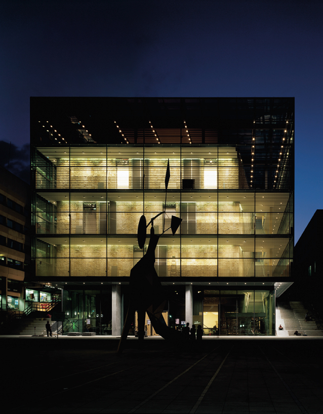 Kaum ein Stuttgarter Bauprojekt wurde so viel diskutiert wie der Neubau für die städtische Kunstsammlung – nicht zuletzt wegen seiner prominenten Lage mitten im Zentrum der Stadt: Im März 2002 musste der Kleine Schlossplatz – ein von Anfang an problematisches Verkehrsbauwerk der Nachkriegszeit – dem Museumsneubau weichen. Bis es soweit war, brauchte es jedoch zwei Jahrzehnte, drei Wettbewerbe und ein Gutachten. 1999 schließlich war der Entwurf der Berliner Architekten Hascher + Jehle als Sieger aus einem internationalen Wettbewerb hervorgegangen. Da der gesamte Schlossplatz von Bauwerken unterschiedlicher Epochen begrenzt ist, die ihre jeweils eigene Sprache sprechen, entschieden sie sich für einen architektonischen Solitär, der städtebaulich eindeutig in der Königstraße steht und mit seiner Umgebung ein Ensemble bildet. Bewusst springt der Neubau leicht aus der Bauflucht der Königstraße zurück. Dadurch entsteht ein Eingangsbereich vor dem Museum, der dem Ort Großzügigkeit verleiht und den Blick auf den Portikus des Königsbaus frei gibt.