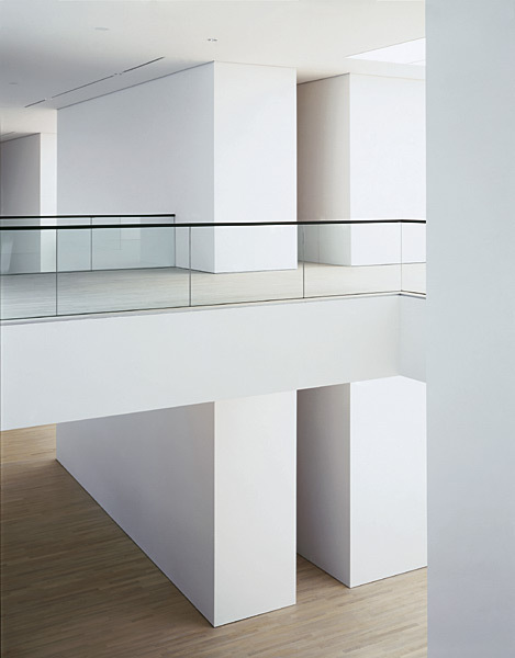 Die Sichtbetonwände des Erdgeschosses lagern auf der darunter verlaufenden langen Wand im Untergeschoss. Sie und auch die ihr gegenüber liegende Wand bilden die Begrenzung zu den unmittelbar neben dem Museumsbau verlaufenden Tunnelröhren. Erst mit Betreten des Untergeschosses wird erkennbar, dass die 115 Meter lange und 14 Meter breite Fläche sich ihrerseits aus einer still gelegten Tunnelröhre ergeben hat. Von diesem Standort aus erklärt sich auch die Ausrichtung des gesamten Gebäudes: Der Verlauf des Tunnels bildet die Achse, nach der sich Erd- und Untergeschoss orientieren. Auch die um sechs Grad aus dem rechten Winkel abweichende, zum Königsbau parallel verlaufende Wand in allen Kubusetagen folgt dieser Vorgabe. Aus diesem Grund haben alle Räume im Untergeschoss maximal zwei rechte Winkel.