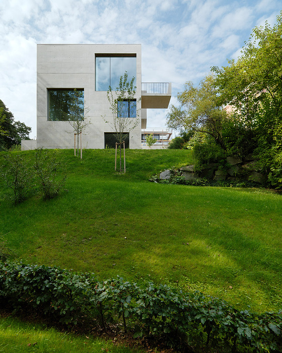 Das eigene Budget sowie Ansprüche und Lebensart kannten die Architekten freilich genau: Das Haus sollte gut im Hang liegen, möglichst viel bestehenden Garten retten und trotz Nordlage nach allen Regeln der Kunst in lichtgefluteten und durchlässigen Räumen den Blick zelebrieren.