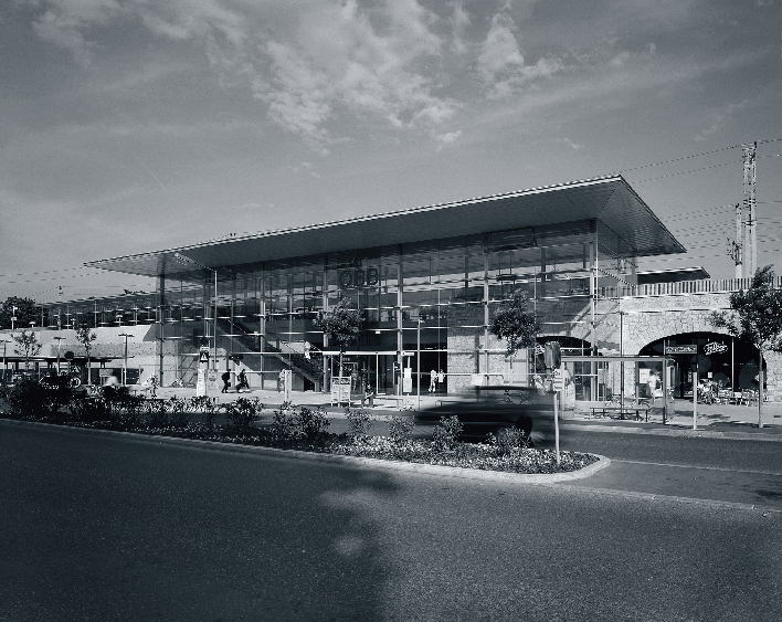 Allerdings bedeutet dies eine Reduktion der erforderlichen Baumasse, wodurch die stadträumliche Präsenz sowie auch die mögliche Rolle im urbanen Gemenge abgebaut und zurückgestuft werden. Bei Erneuerungen oder Neuplanungen stehen die Architekten daher vor der Aufgabe, mangels möglicher Masse mit viel subtileren Mitteln städtebauliche Signifikanz zu erzeugen. Gerade dafür erweist sich die Hochlage der Bahntrasse in Baden als Vorteil. Denn als übergeordnetes stadträumliches Strukturelement ist der Damm, teils mit Mauern, welche die Böschungen befestigen, bereits vorhanden. Es galt daher, den Ort aufzuzeigen, wo der Austausch zwischen den Verkehrssystemen stattfindet. Natürlich ist dieser bereits durch die darauf ausgerichtete Stadtstruktur und die Tradition vorgegeben. Dennoch war es wichtig, ein Zeichen zu setzen. Das ist dem Wiener Architektenteam Dieter Henke und Marta Schreieck in doppelter Hinsicht gelungen. Einerseits mit einer nichts zu wünschen übrig lassenden Klarheit, andererseits mit kluger Angemessenheit im Umgang mit dem Vorhandenen.