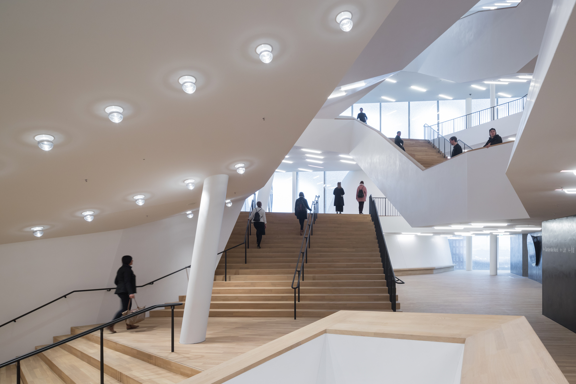 „Das Außergewöhnliche an diesem Gebäude“, sagt Mergenthaler, „ist seine Öffnung zur Stadt. Das ist kein elitäres Haus für Klassik, keine hermetische Schmuckschatulle mit samtbezogenen Sitzen, sondern eine Bühne für jeden Geschmack.“ Einerseits plant Intendant Christoph Lieben-Seutter, vormals zuständig fürs Wiener Konzerthaus und Opernhaus Zürich, eine Bandbreite von Jazz über World Music bis hin zu experimentellen Klängen. Andererseits richtet sich das Haus auch an konzertfremde Besucher. Die Aussichtsplattform in 37 Meter Höhe ist öffentlich zugänglich.