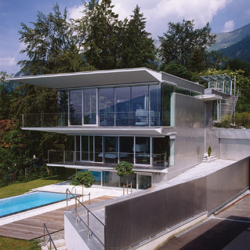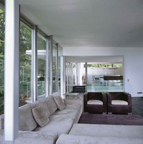 Eine großzügige Aluminium-Glas-Konstruktion ermöglicht Durch- und Ausblick.