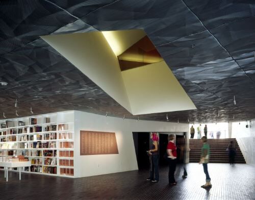 Der hie und da aus den Fugen ausscherende quadratische Korpus, der an einer Stelle frei schwebend über die Strasse ragt, steht in apartem Kontrast zu der gestrengen Festung des Ursprungsgebäudes, dessen pflaumenfarbener Backstein im Boden des Neubaus wieder aufgenommen wird. Das ist mehr als bloss ein Zitat: nämlich die bis ins Detail gehende quasi-organische Verbindung zweier Extreme. Die Aussenhaut des Erweiterungsbaus besteht aus einem silbrig schimmernden Aluminium; seine fragile Struktur reflektiert das ständig wechselnde Wetter. Wenn es bedeckt ist, ist er vom Himmel beinahe nicht zu unterscheiden.