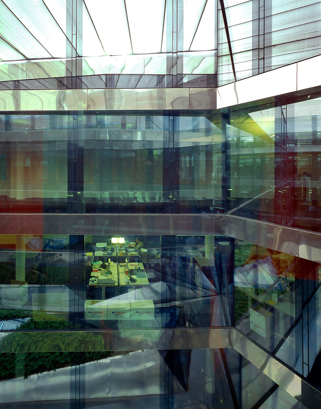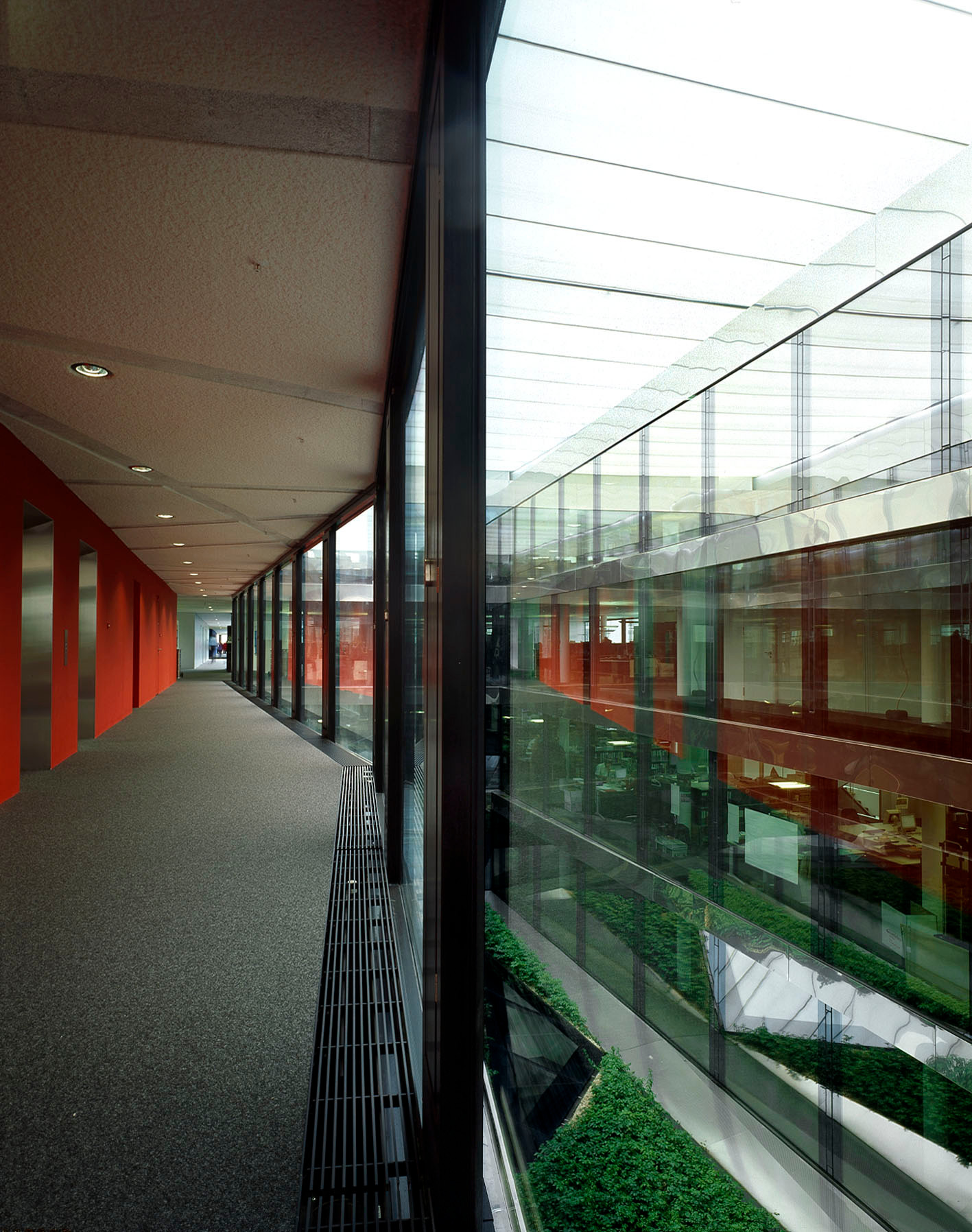 Als man Ende der achtziger Jahre einen Masterplan für das rund 1,2 Kilometer lange Gelände des schweizerischen und französischen Bahnhofs in Basel vorlegte, präsentierten der Kanton Basel- Stadt und die Schweizerischen Bundesbahnen (SBB) eine städtebauliche Entwicklungsstrategie, die auch die Westflanke des Areals mit Halle und Garage betraf. Die Halle wurde von der Denkmalpflege sorgsam beobachtet und galt als sakrosankt. Die Garage war mit ihrer eigenwilligen Typologie nicht umnutzbar und musste dem ersten Haus des New Yorker Architekten Richard Meier in der Schweiz weichen (1998). Vis-à-vis von Meiers «White Plaza» hatten die Architekten Diener & Diener 1994 ein Schulungs- und Konferenzzentrum einweihen können. Für den unternutzten Teil der französischen Bahnhofsanlage lobten die SBB schon in den achtziger Jahren einen Wettbewerb aus, den Herzog & de Meuron gewannen. Das Projekt blieb lange in der Schublade, doch als man 2001 mit dem Bau der benachbarten Bahnhofspasserelle begann, gab man in Bern auch für die Realisierung des «Elsässertors» grünes Licht. Herzog & de Meuron ergänzen nun mit ihrem soeben vollendeten neusten Schweizer Bau die Westflanke des Bahnhofs mit der kühlen Eleganz eines Glasriegels zu einem imponierenden Architekturquadrat.