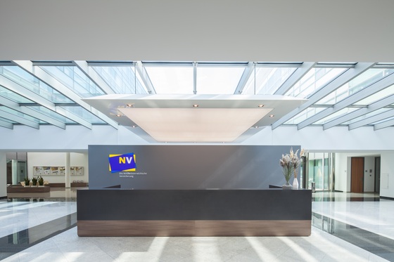 Ich bin ein klassischer Architekt und fühle mich der abendländischen Stadt und Baukunst verpflichtet. Meine Erfahrung ist, dass klassische Grundmuster ein unglaubliches Potenzial beinhalten. Das Haus hat zwei wichtige Seiten: vorne das Forum, hinten der Long-Square, der noch gebaut wird. Wir versuchten in dieser Gebäudetiefe Büros zu organisieren, ohne dass man denkt, wir hätten einfach die Trennwände weggelassen. So ist das symmetrische Raumsystem entstanden. Aber es gibt genügend Abweichungen von der Grundsymmetrie. Man muss die Symmetrie mit Ausnahmen attackieren – sie ist nicht relevant.