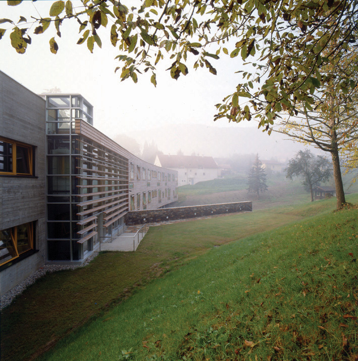 Vergangenen September wurde die neue Volksschule von Wildon, einer kleinen Gemeinde in der südlichen Steiermark, eröffnet. Ihre nahe Verwandschaft zur Volksschule Karl-Morre in Graz ist unverkennbar. Nicht nur äußerlich ähneln die beiden Gebäude einander, auch konstruktive und bauphysikalische, besonders den Schallschutz betreffende Details, die für Karl-Morre entwickelt wurden, kamen in Wildon – zum Teil in verfeinerter Weise – zum Einsatz.