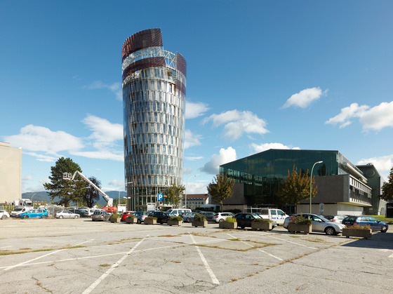 Der Unterschied liegt in der Dimension. Bei einem Industriebau dieser Größe - die Außenmaße der Gesamtanlage betragen rund 100 mal 140 Meter - ist die Harmonie zwischen Form, Funktion und Konstruktion nicht mehr in derselben Weise aufrecht zu erhalten wie bei den beiden anderen Projekten. Die eigentliche Struktur des Gebäudes für die Walter Bösch AG ist für den Betrachter überhaupt nicht mehr nachvollziehbar: Den Kern der Anlage bildet ein Hochregallager, das allseitig von Produktionshallen umschlossen wird. Die Verwaltungsbauten als äußerste Schicht bilden zwar das Gesicht nach außen, machen aber nur einen vergleichsweise kleinen Teil der Gesamtkubatur aus. Dass es Steinmayr gelungen ist, angesichts einer Nutzfläche von 22.750 Quadratmetern den Eindruck von Kohärenz über mehrere Baustufen zu erhalten, ist eine besondere Qualität des Projekts.