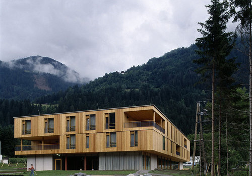 In Kärnten hat der in Graz ansässige Architekt Dietger Wissounig nun mit einem Altenwohn- und Pflegeheim auf sich aufmerksam gemacht. Dieses Erstlingswerk in Steinfeld im Oberen Drautal hat 2005 den Architekturpreis des Landes und den Kärntner Holzbaupreis zugesprochen bekommen. Der auf den ersten Blick monolithisch wirkende Bau steht abgerückt von der Straße am Ortsrand, umgeben von saftigen Wiesen und Wald, in seiner Nähe nur die Volksschule und eine als öffentlicher Park angelegte große Grünfläche mit Teich. Isolation soll verhindert werden, indem „hausfremde“ Funktionen angeboten werden.
