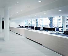Einen Namen machten sich Stürm und Wolf vor zehn Jahren mit einer monolithischen Einstellhalle in Domat Ems. Ganz anders als dieser flache Solitär am Fuss des Hochgebirges, aber von ähnlich minimalistischem Geist geprägt war das dank kargem Materialeinsatz fernöstlich anmutende Ladenlokal von Issey Miyake, das sie etwa zur gleichen Zeit an Zürichs Bahnhofstrasse einrichteten. Auf diese meisterhafte Miniatur folgten weitere Umbauten und Innenraumgestaltungen. Grosses erhoffen liess 1998 der Sieg im Wettbewerb für ein Kunstmuseum in Vaduz. Doch schreckten die Auftraggeber vor diesem unkonventionellen, im Grundriss einfachen, im Schnitt aber komplexen Entwurf zurück. Der Sitz der Sozialversicherungsanstalt an der Röntgenstrasse in Zürich vermittelt nun eine Idee von dem, was sich die Liechtensteiner entgehen liessen.
