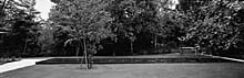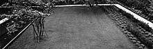 konstruierten Mauern und Heckenwänden bildet das Ordnungsprinzip, während wie auf einer zweiten, kontrastierenden Ebene ein lockeres Arrangement aus bestehenden und zu pflanzenden Bäumen schwebt. Das Layout des Gartens