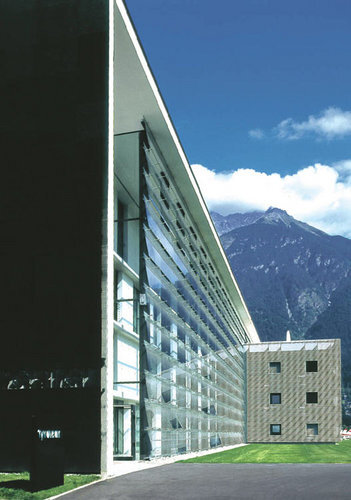 Nun geht es hier nicht um ein Flughafengebäude, sondern um das Verwaltungs- und Betriebsgebäude einer Fluglinie - der Tyrolean Airways - , allerdings befindet sich dieses Gebäude unmittelbar „am“, sprich neben dem Flughafenareal. Das heißt, es geht um ein Gebäude, dem zwar nicht auf der Nutzungsebene - letztlich ist es ein Bürohaus - , ganz bestimmt aber auf einer übergeordneten Bedeutungsebene mehr Gewicht zukommt als einem beliebigen Verwaltungsbau: Wer in Österreich nach Tirol fliegt, der landet auf dem Innsbrucker Flughafen, und wer in Innsbruck gelandet ist, der war zuvor mit Tyrolean Airways unterwegs.
