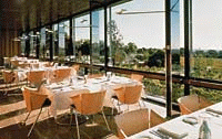 Obwohl prominent über dem Rebberg gelegen und eng mit dem historischen Komplex verflochten, ordnet sich der rechtwinklig zum Küchengebäude entlang der Nordsüdachse errichtete Restauranttrakt harmonisch ins Gesamtbild ein. Dieser als «verglaster Aussenraum unter einer schwebenden Dachplatte» konzipierte japanisch elegante Pavillon, der an milden Tagen fast ganz geöffnet werden kann, ist gleichsam die Neuinterpretation des australischen Verandahauses. Über eine Treppe erreicht man vom Rebberg her den Eingang. Ein Bassin, geteilt von einer Betonwand, bildet hier den neuen, an Mies van der Rohes Barcelona-Pavillon erinnernden Mittelpunkt der Gesamtanlage. Mit seiner Transparenz erzeugt das Restaurant einen reizvollen Kontrast zu den alten Bruchsteinbauten; und der mit eleganten Designermöbeln eingerichtete Speisesaal gewährt einen Panoramablick auf Stadt und Meer. Zwölf verchromte Stahlträger, auf denen das Metalldach ruht, und ein hölzerner, den Abgang zum Weinkeller markierender Buffeteinbau setzen hier die einzigen Akzente in einer Architektur, die ihre Qualität aus der Reduktion zu schöpfen weiss.