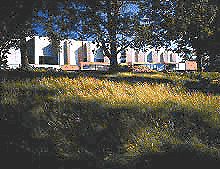 Trichterartig verengt sich der Aussenraum zum Eingang.