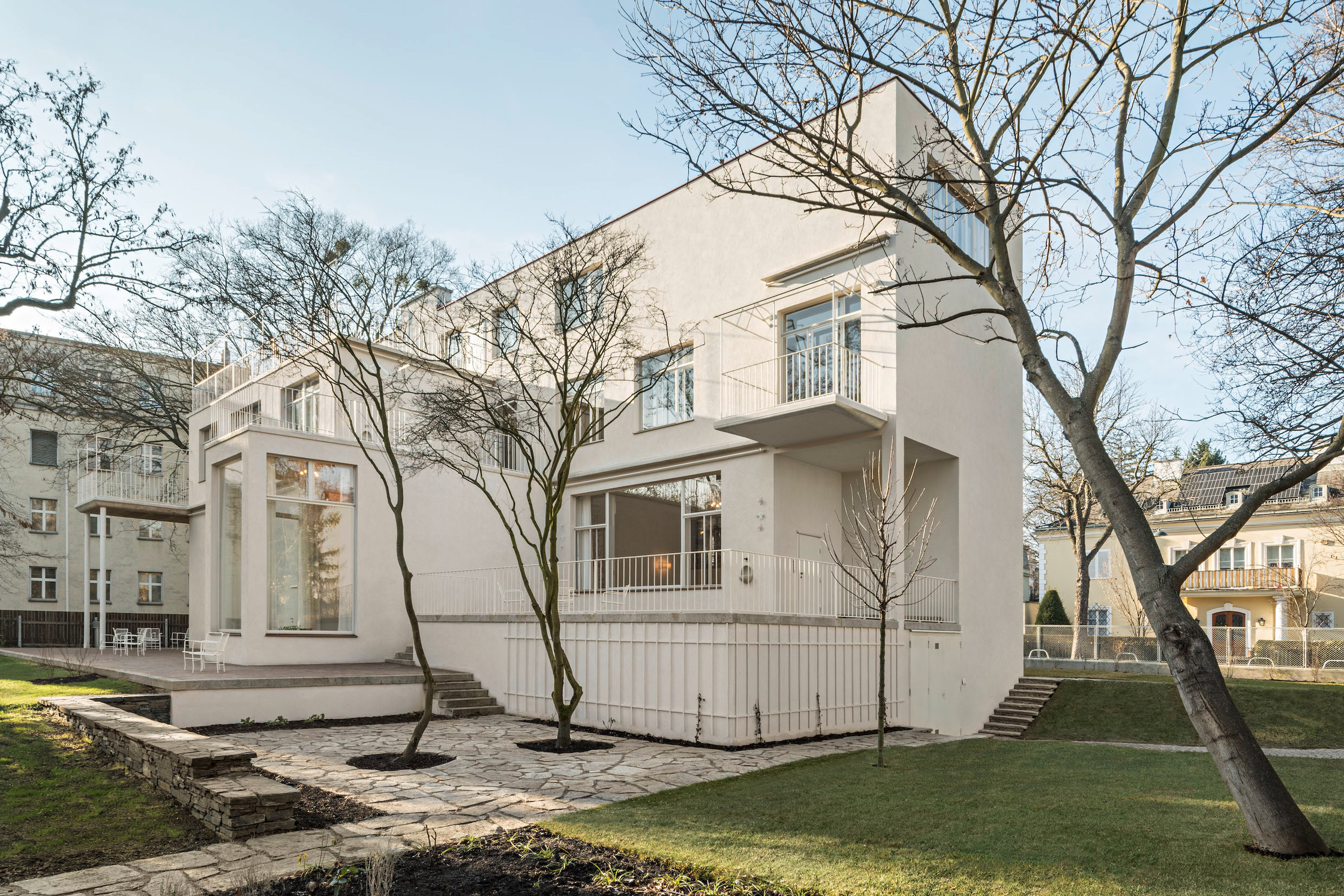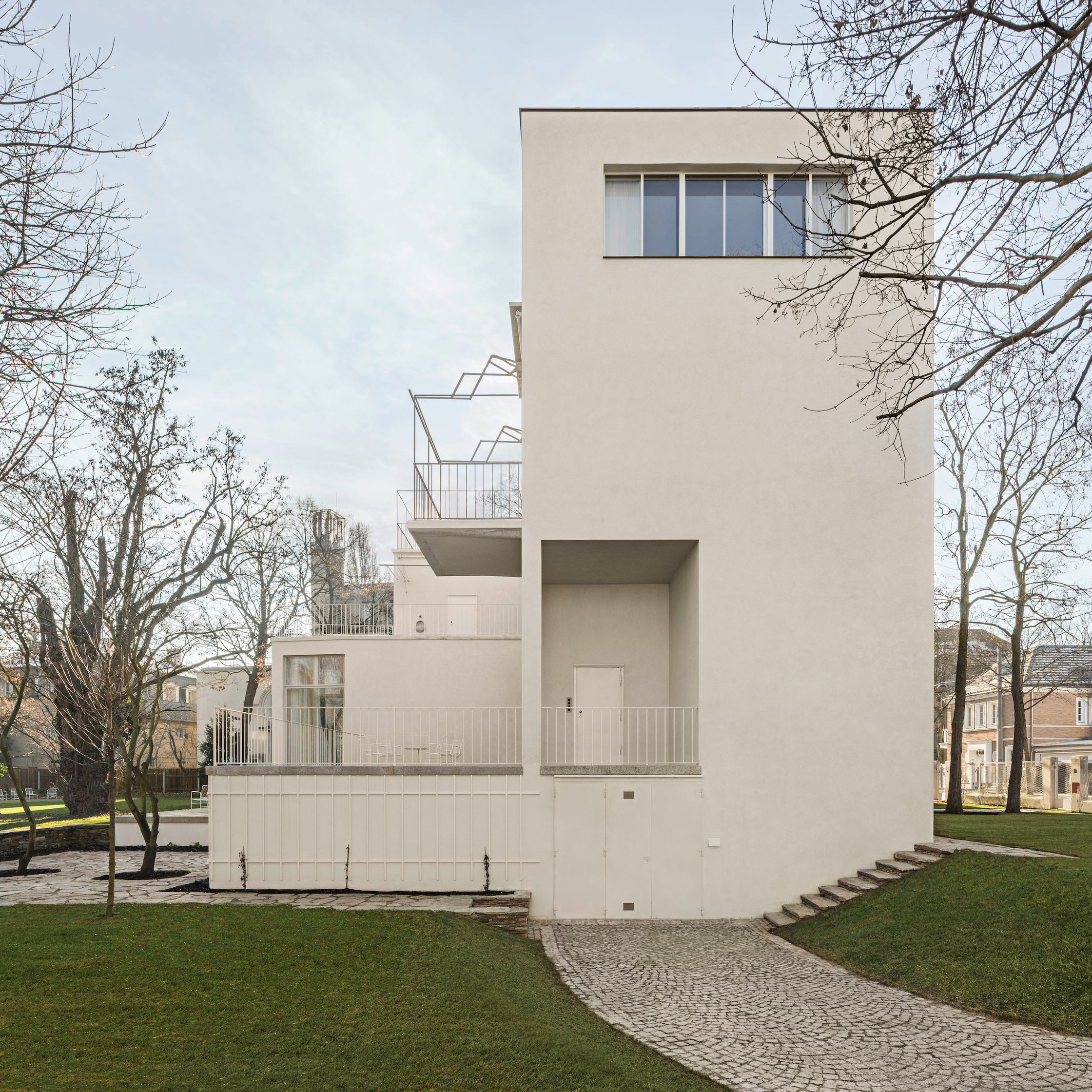 „Die eleganten Proportionen, die schlanken Balkonplatten, die riesengroßen Glasscheiben, in denen sich bereits die luftigen, teils zweigeschoßigen Innenräume abzeichnen – ich denke, spätestens hier beginnt man die Einzigartigkeit dieses Bauwerks zu begreifen“, sagt Trierenberg, der die Villa Beer gerne in einem Atemzug mit der Villa Tugendhat (1930) von Ludwig Mies van der Rohe und der Villa Savoye (1931) von Le Corbusier und Pierre Jeanneret nennt. „Und wie leider sehr oft in den jüdischen Biografien dieser Zeit, wurde das Haus nur wenige Jahre lang bewohnt.“