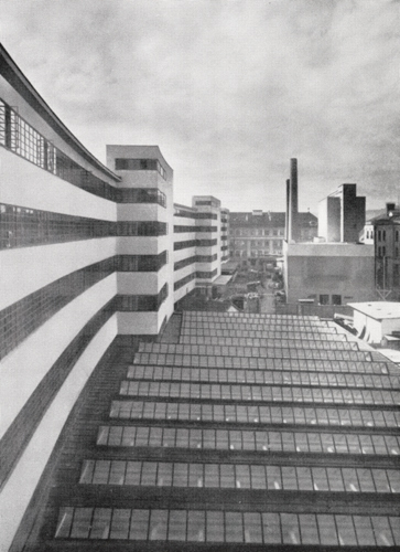 Um bauphysikalische, denkmalpflegerische und gestalterische Anforderungen unter einen Hut zu bekommen, wurde das gemacht, was schon bei der Van Nelle Fabrik in Rotterdam (Architekt Wessel de Jong) erfolgreich war: Eine nach innen verlegte zweite Glashaut, die alle nötigen klimatischen Kriterien erfüllt, ohne die denkmalgeschützte Substanz angreifen zu müssen.