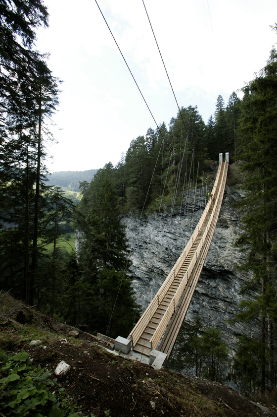 Mit der Kombination von Pultdach (über Wagenhalle, Maschinenraum und Spanngewichtsschacht) und Satteldach (über Wartesaal und Verwaltung) erinnert die Talstation am ehesten an das regionale alpine Bauen – nicht zuletzt auf Grund des hohen Holzanteils der Fassaden.