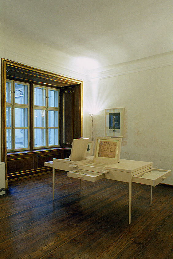 Hier hakt nun die Gestaltung des Ausstellungsmobiliars ein: Der Besucher darf - was an originalen Erinnerungsstücken aus konservatorischen Gründen verboten bleiben muß - Laden herausziehen, Klappen öffnen und schließen sowie Tasten drücken. Damit wird dem Betätigungsdrang und der Neugier ein Feld geöffnet. Bei dieser kontextuellen Bedeutung der Möbel wird es nicht erstaunen, daß das auf der Biennale ausgestellte Stück etwas verloren wirkte. Obwohl Elsa Prochazka mit ihrem Konzept sehr konkret auf Besucherwünsche nach näherem Zugang auch zur Person des Musikers eingeht, verbietet sie sich das Schwelgen in Klischeevorstellungen und erschwert in harmloser Abstufung den Zugang zur Information.
