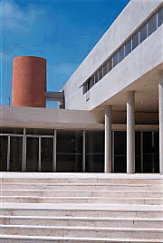 Als weltweit grösstes Ensemble klassisch-moderner Baukunst gilt heute die Mittelmeermetropole Tel Aviv. Doch eine stürmische Entwicklung bedroht nun dieses Erbe. Denn was in der weissen Stadt seit einigen Jahren gebaut wird, ist meist nur Mittelmass. Vermehrt wehren sich dagegen aber selbstbewusste Architekten wie etwa Bracha und Michael Chyutin, die sich in ihrem Schaffen zurückbesinnen auf die moderne, vom Bauhaus und von Le Corbusiers Ideen geprägte Tradition des Landes. Davon zeugt nicht zuletzt ihr neustes Werk in der unmittelbar mit Tel Aviv zusammengewachsenen Nachbarstadt Givatayim. Es handelt sich um ein Kulturzentrum mit Gästehaus, das Ende 1996 fertiggestellt und jüngst als bester Bau der vergangenen Jahre in Israel mit dem Ze'ev-Rechter-Preis geehrt wurde.