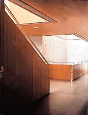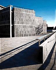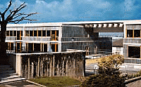 Die archaisch wirkende Verkleidung mit vertikal in den Beton eingegossenen Bruchsteinen überzeugt und ist als Beitrag zur aktuellen Diskussion der Gebäudehülle interessant. Sie verleiht dem Bau flimmernde Lebendigkeit, aber auch Schwere und integriert ihn ganz diskret in seine Umgebung. Die freistehenden Mauerscheiben, die optisch nur durch Fensterflächen zusammengehalten werden, zeugen - ähnlich wie die leere, vom perforierten T-Träger überdachte Mitte - von der komplexen Durchdringung von Innen und Aussen. Dieses Raumgefüge erreicht seine grösste Dynamik in den Korridoren der Schule, welche die Unterrichtsräume, Ateliers und Lehrerzimmer erschliessen. Hier wird das Treppen- und Passerellensystem des Aussenraumes erneut aufgenommen. Zwischen den Betonkuben der Ateliers öffnen sich - als Antwort auf den zentralen Durchblick - grosse quadratische Fenster; und der zurückhaltende Grau-Gold-Kontrast von Holz und Beton wird belebt von Tageslicht, das durch die Schlitze des Schwebebalkens tief ins Gebäude eindringt. In dieser materialsinnlichen Einfachheit und in der Verbindung von Funktionalität und Baukunst lassen sich Bezüge zur Deutschschweizer Architektur ausmachen. Doch sind es die lateinischen Elemente - die rahmensetzende Grossform des Schwebebalkens, die sorgfältige Integration in den städtischen Kontext und das urbane Selbstverständnis -, die diesem Bau seinen unvergleichlichen Charakter verleihen.