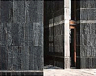 Diese Komposition macht klar, dass es den Architekten hier um mehr als nur um reine Funktionalität ging. Der bipolare Bau und das repetitive Fassadenmuster lassen denn auch den Zweck des Hauses nicht ohne weiteres erkennen. Zugunsten einer poetischen Gesamtwirkung tritt die Konstruktion zurück. Geometrie, serielle Ordnung, Betonstruktur und Schwebebalken beschwören die Minimal art. Aber auch der Bezug zu Louis Kahn ist nicht zu übersehen: So zitieren die nach Nordwesten vorstossenden Atelierkeile das Salk Institute in La Jolla, während das mit schieferartigem Quarzit ausgefachte Betonskelett auf das Studentinnenheim des Bryn Mawr College in Pennsylvania verweist.