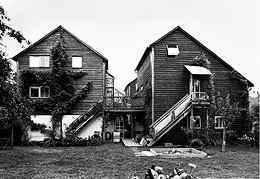 Speziell die Cooperative lag mehr auf der subversiven, pfiffigen Linie von Walter Segal. Selbstbau, einfachste Details ohne komplizierte Maschinen und Verfahren war die Devise: Veränderlichkeit in jeder Hinsicht war ein größerer Wert als Beständigkeit, das Zelt als Metapher lag viel näher als die Villa. Holz war dieser Generation ein Mittel zum Zweck, keine Weltanschauung, schon gar keine regionalistische. Als die Cooperative sich größeren Aufgaben zuwandte, wurde Holz fallengelassen und massiv gebaut. Dieser Pragmatismus im Idealismus der Jugendjahre war - aus meiner heutigen Sicht - die noch stärkere, die wirkliche Triebfeder.