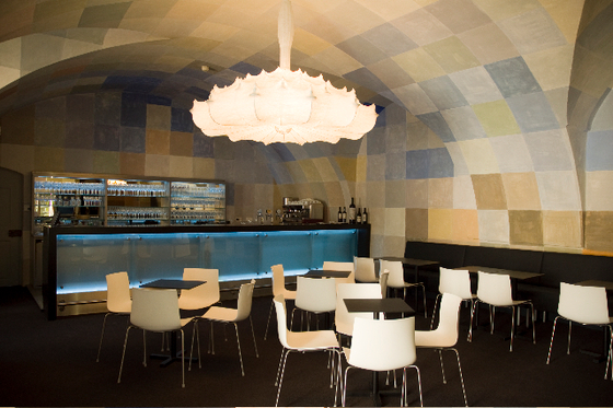 In den durch große Fenster perforierten Raum, in dem die Logik des mit zwei Stützen unterfangenen, statischen Systems keine Rolle mehr spielt, werden ein Vorhang und ein Deckel aus Sperrholz eingehängt. Die Fugen rhythmisieren den Raum, ordnen ihn, fassen seine Irregularitäten zusammen. Ifsits, Ga-nahl und Larch intendieren in dem gemeinsam mit Claudia König und Christian Matt realisierten Gastraum keine sterile, sondern eine sinnliche Stimmung, die mit dem Attribut sachlich gut zu umschreiben ist. Die moderierte Sinnlichkeit deutet auf eine Ambivalenz des Ansatzes hin, auf ein „Sowohl-als- auch“, das freilich nicht jenen Grad an Mehrfachkodierung erreicht, den Hermann Czechs gereifte Café-Schöpfungen in aller Gelassenheit vorstellen können.